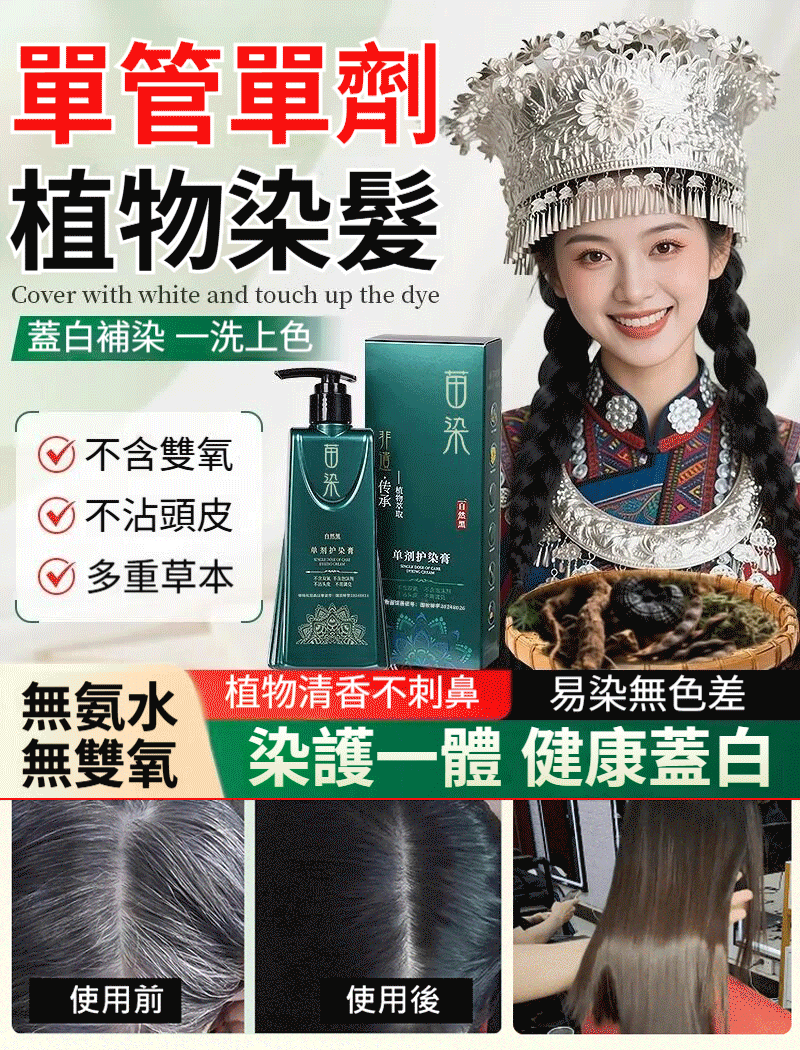 新品單劑花香染 ,鮮花植萃,染髮還能護髮。輕鬆遮蓋白髮, 減齡必備,在家染出漂亮髮色,健康染髮,染護合一,不傷髮質不過敏不黑頭皮!美飄思單劑花香染